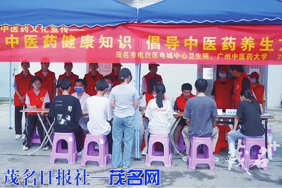 茂名晚报讯 夏日炎炎,清风送爽。近日,茂名滨海新区电城中心卫生院联合广州中医药大学,共同开展中医药文化宣传和老年人免费健康体检活动,滨海新区志愿者和广州中医药大学生志愿者,为活动提供志愿服务。
