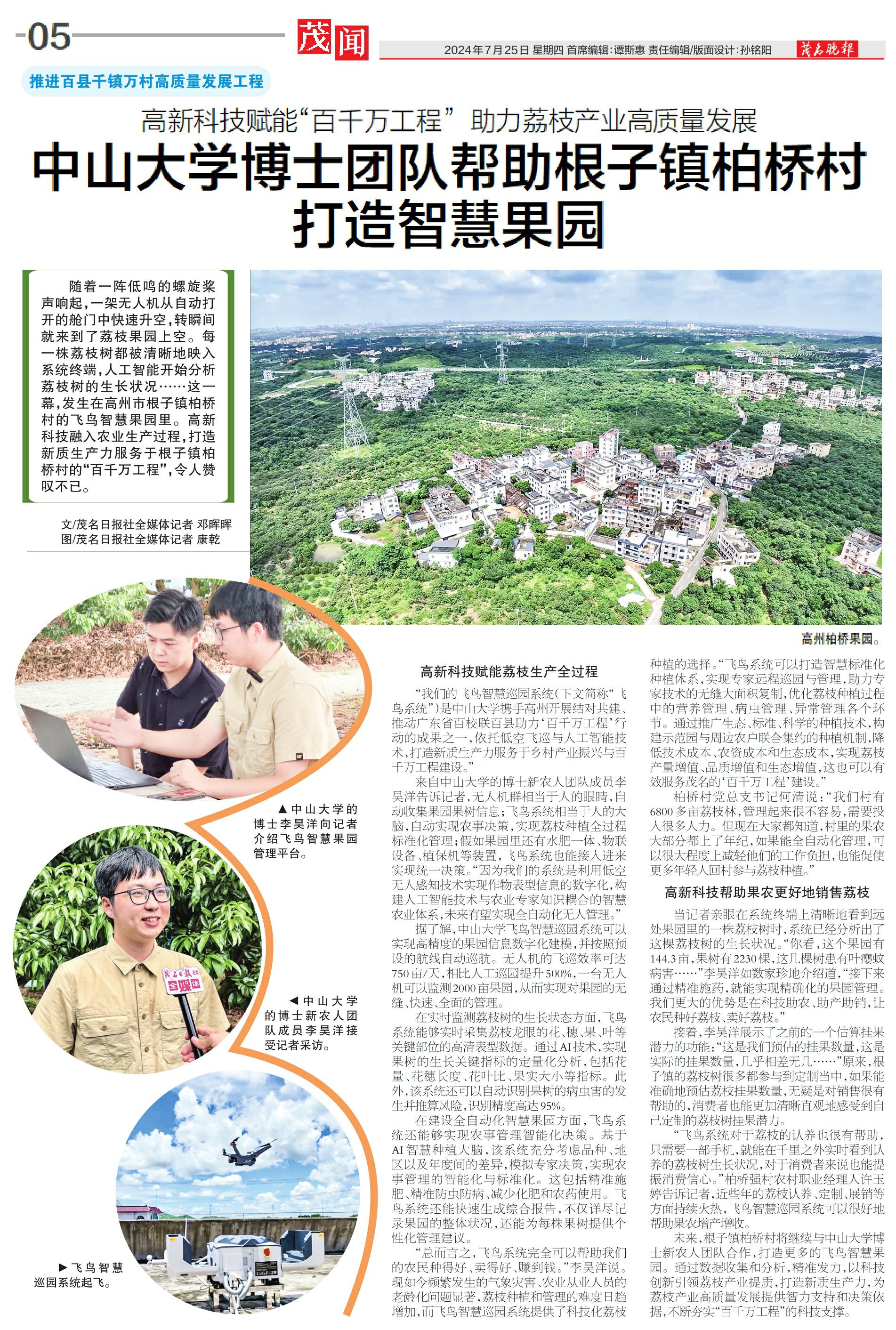 中山大学博士团队帮助根子镇柏桥村打造智慧果园