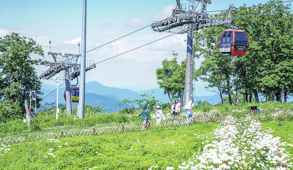 在国家级滑雪旅游度假地——吉林市万科松花湖度假区,草木葱郁、空气清新、凉风习习。度假区市场部负责人黄钟锐介绍,度假区探索发展四季旅游产业体系,打造了山地休闲、避暑度假等项目,这里拥有60万平方米的高山花海,还为热爱山地自行车等户外运动的游客提供了专业场地。“为了更好服务暑期游客,我们还策划了山谷音乐节、露营节等活动,文旅场景将进一步升级。”