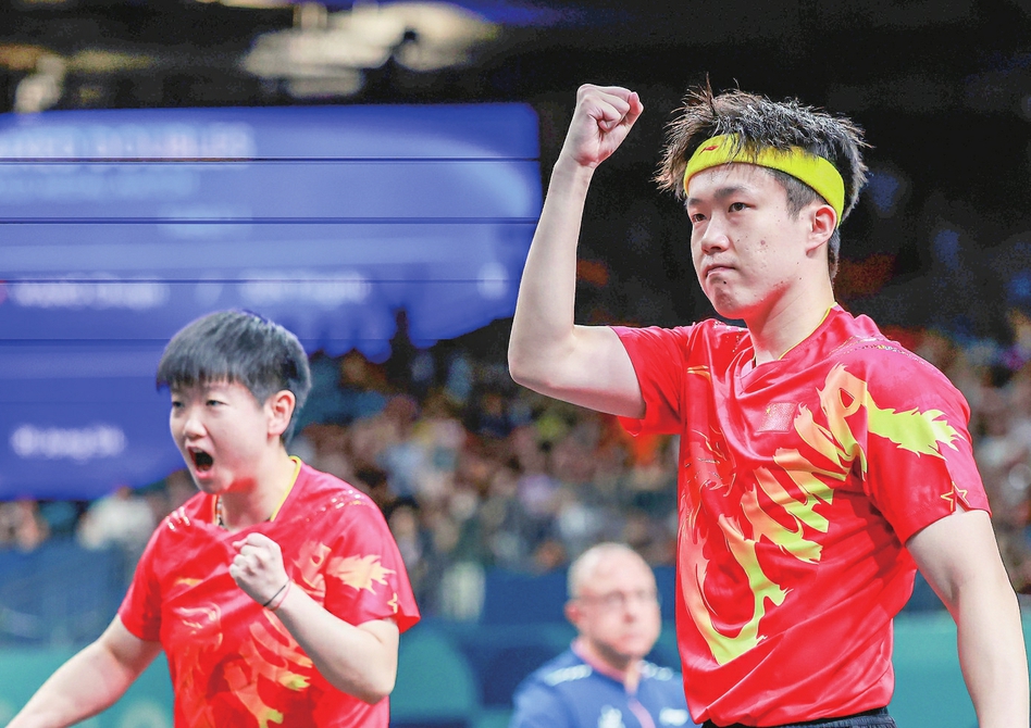 新华社巴黎7月30日电(记者何磊静、岳冉冉、王昀加)30日,南巴黎竞技场4号馆里一片“红色海洋”。头号种子王楚钦/孙颖莎4:2战胜朝鲜组合李正植/金琴英,拿下乒乓球混双项目金牌,这是中国乒乓球队在巴黎奥运会上的首枚金牌,更是国乒历史上首枚混双奥运金牌。