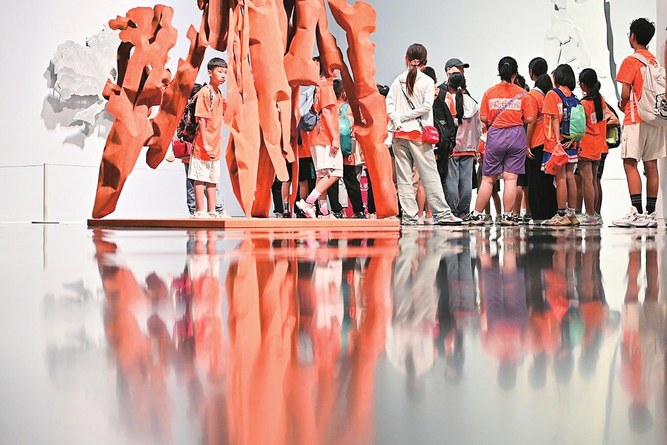 7月24日,参加研学的学生在清华大学艺术博物馆参观。新华社记者尹栋逊摄