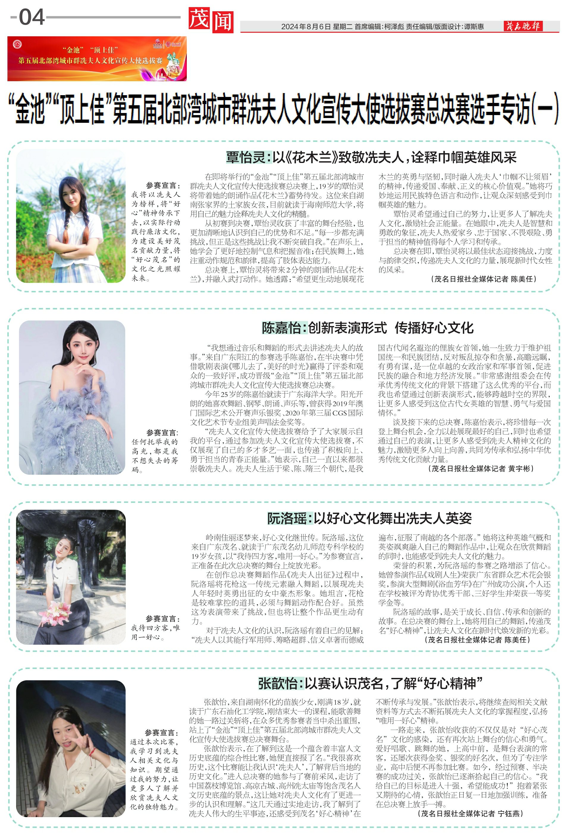 “金池”“顶上佳”第五届北部湾城市群冼夫人文化宣传大使选拔赛总决赛选手专访(一)