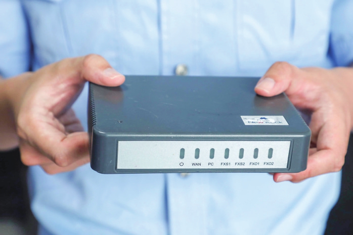 办案民警介绍,这些居民家中的固定电话线终端多了一个闪烁着信号的“黑盒子”,这就是运行中的VOIP语音网关,可将境外网络信号转化为本地固话信号。部分被安装“黑盒子”的用户,误认为这就是普通的“机顶盒”。