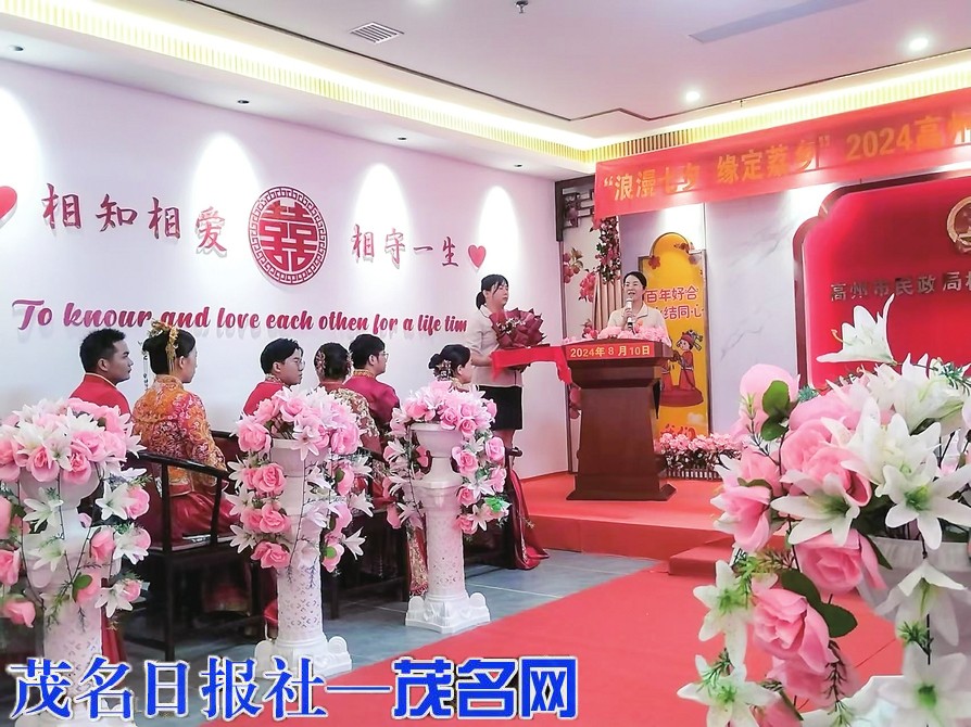 茂名各地民政部门同步举行七夕结婚登记集体颁证仪式
