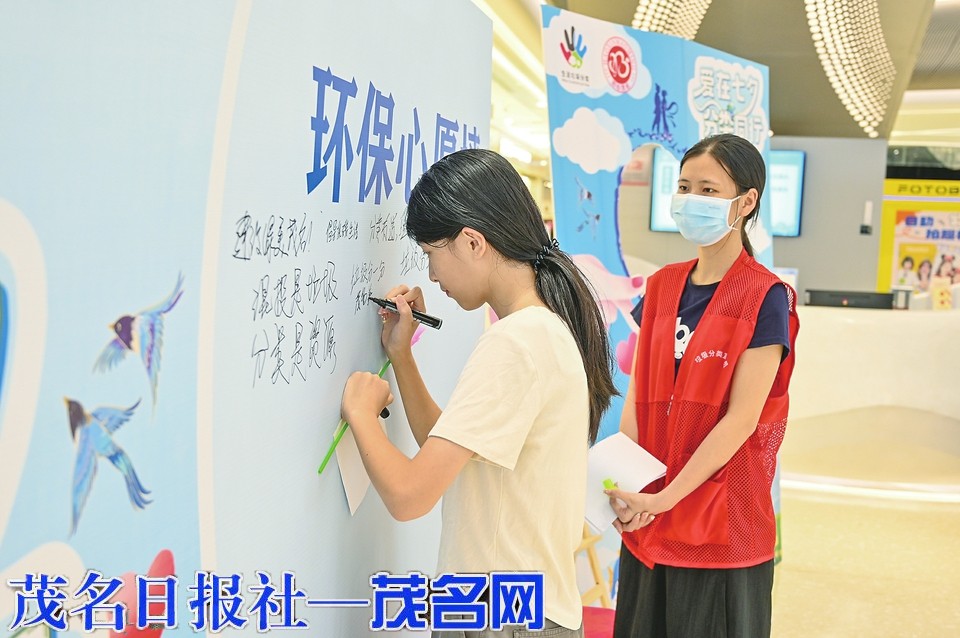 活动当天正值七夕佳节前夕,主办方巧妙地将节日的浪漫氛围融入活动之中,布置了爱心形状的环保合影区,让市民用拍照打卡的方式留下足迹,并将合影分享到社交媒体上,助力宣传垃圾分类的理念。现场还布置了环保心愿墙,在工作人员的引导下,不少市民用简短的话语表达环保心愿,为绿美茂名建设贡献自己的力量。