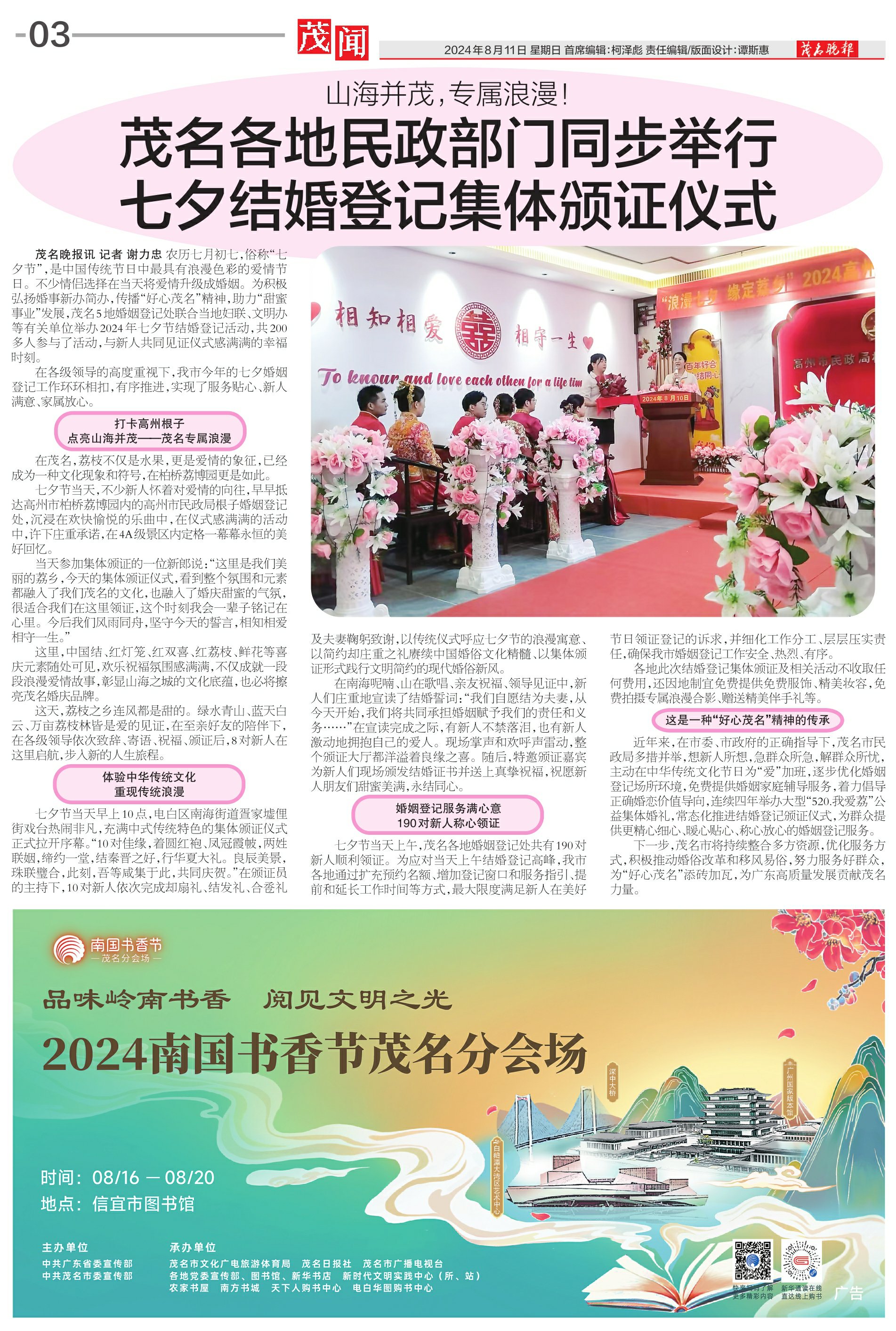 茂名各地民政部门同步举行七夕结婚登记集体颁证仪式