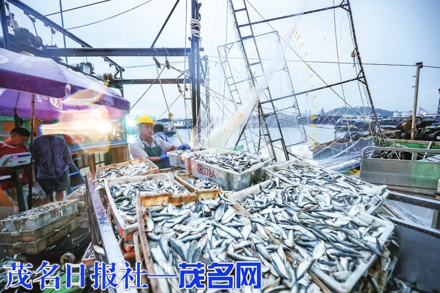 “第一网”海鲜满舱上岸。本版图片由茂名日报社全媒体记者 吴昊 摄