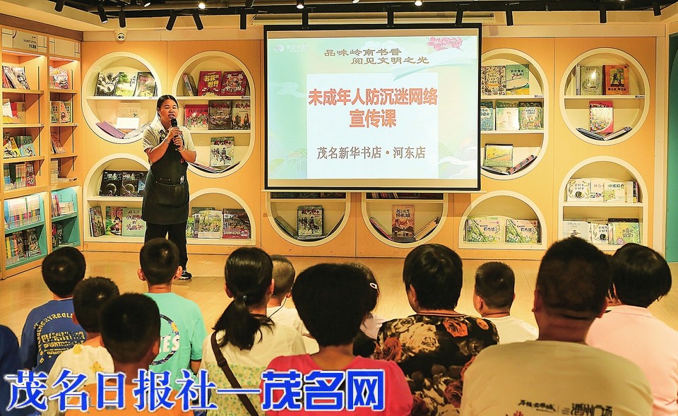 茂名晚报讯 记者 池榕 为保护未成年人身心健康,预防网络沉迷,17日下午,新华书店河东店举办2024年南国书香节系列活动之未成年人防沉迷网络宣传课。活动提倡亲子共读,享受阅读,以阅读代替网络游戏,让书香守护孩子健康成长。