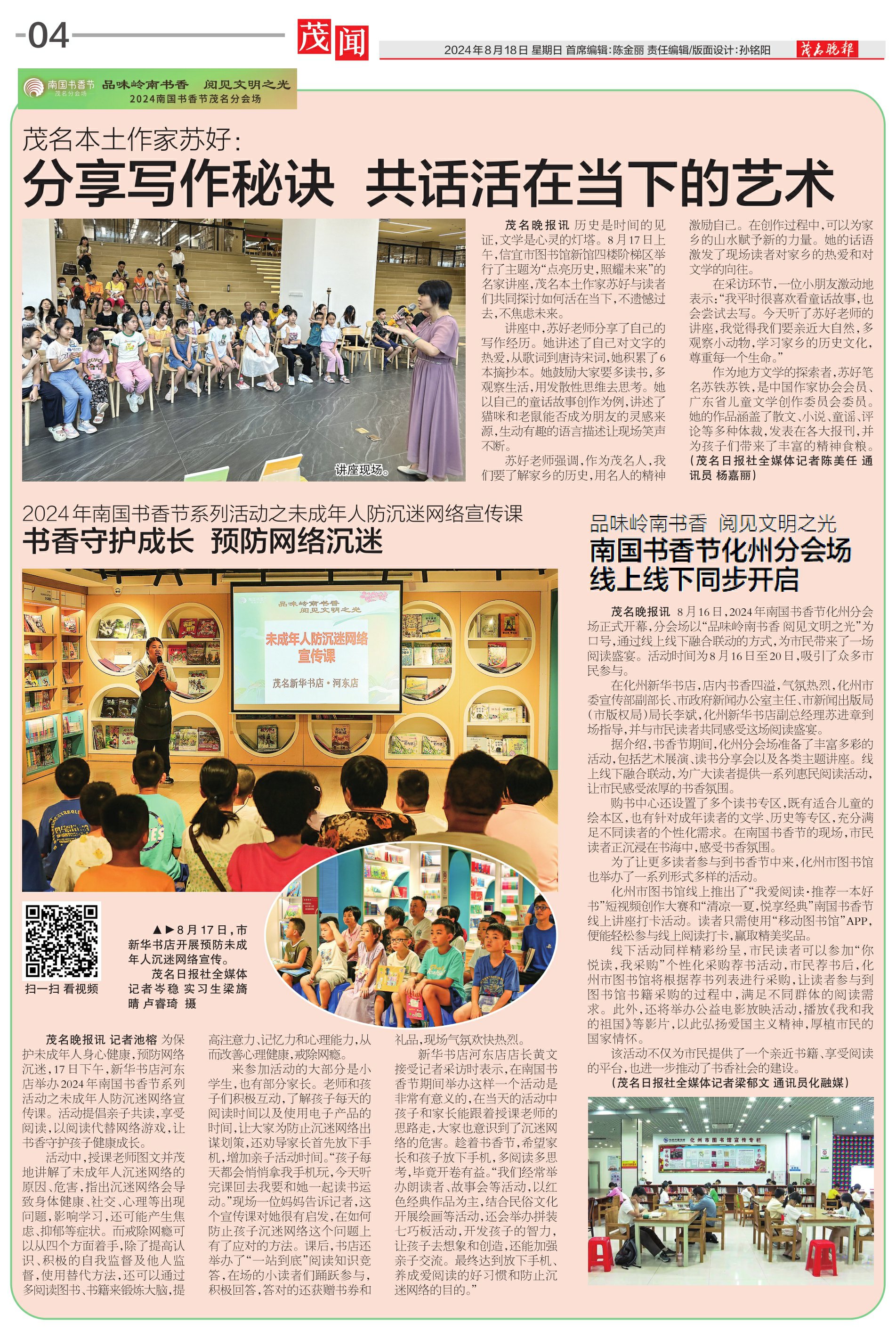 茂名本土作家苏好:分享写作秘诀 共话活在当下的艺术