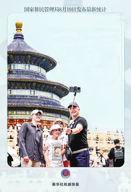 新华社北京8月19日电(记者任沁沁、余俊杰)“China Travel”在外网火了。今年前7个月,全国各口岸入境外国人1725.4万人次,同比增长129.9%,越来越多的外国人加入“中国游大军”。