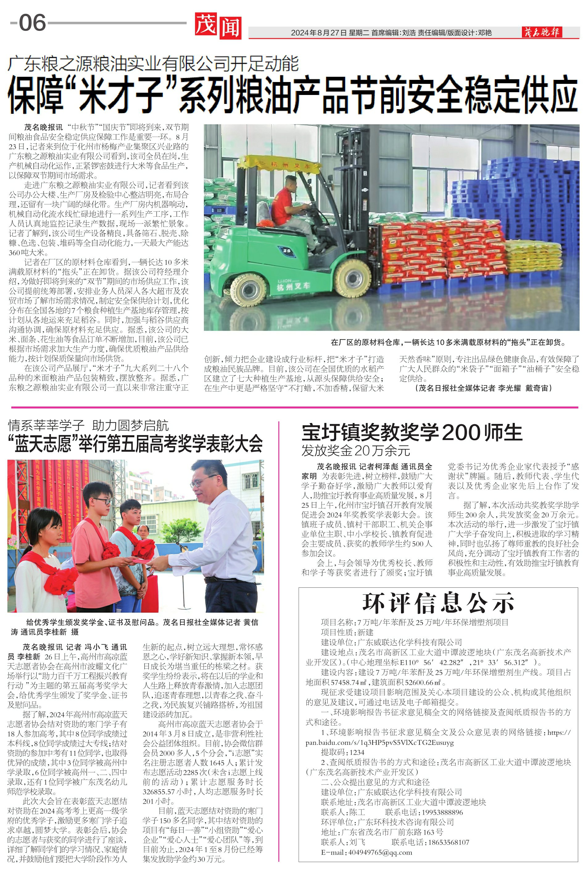 保障“米才子”系列粮油产品节前安全稳定供应