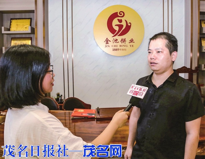 金池饼业有限公司董事长吴志杰接受记者采访。