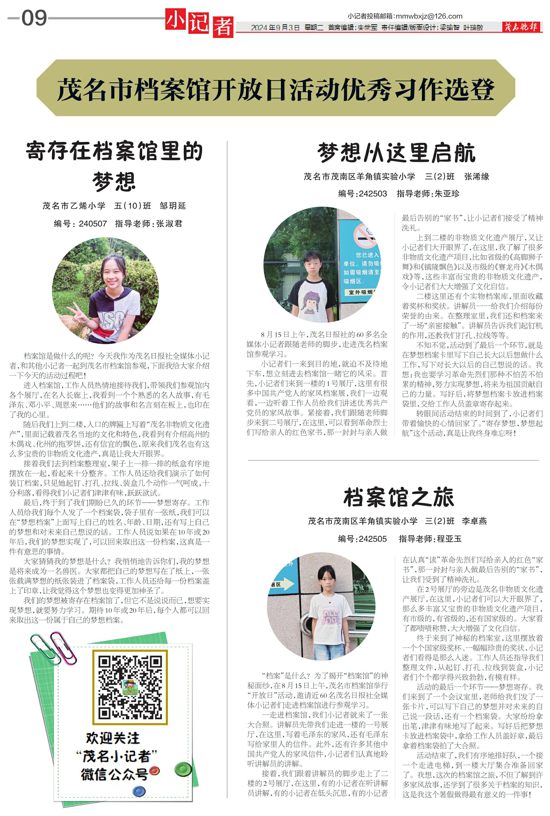茂名市茂南区羊角镇实验小学 三(2)班 张浠缘 编号:242503 指导老师:朱亚珍