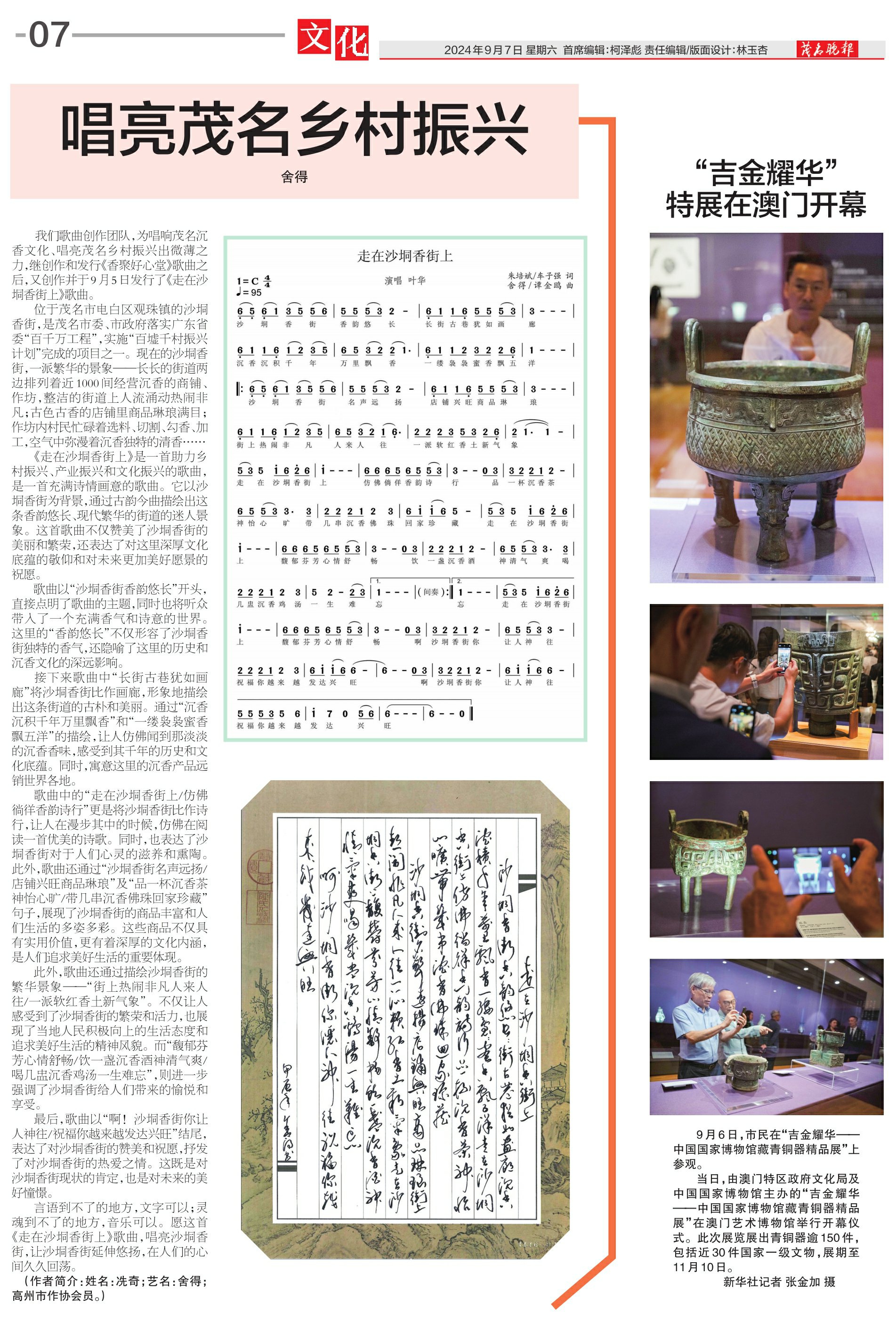 我们歌曲创作团队,为唱响茂名沉香文化、唱亮茂名乡村振兴出微薄之力,继创作和发行《香聚好心堂》歌曲之后,又创作并于9月5日发行了《走在沙垌香街上》歌曲。