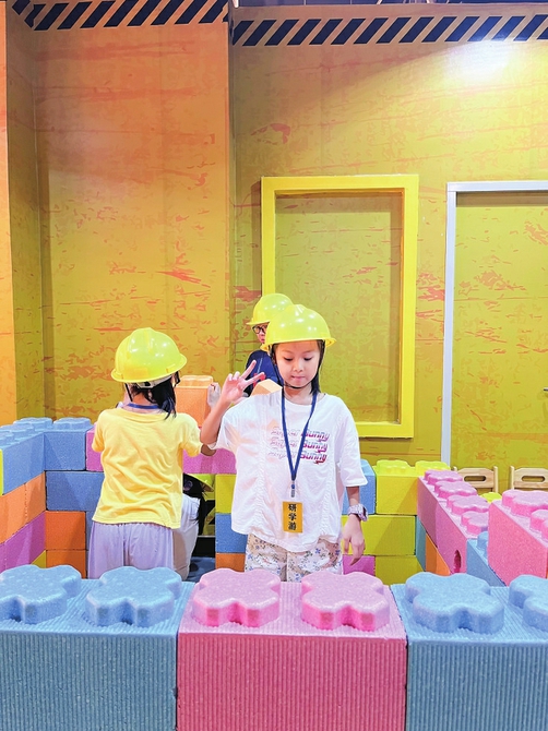 午餐过后,我们前往乐8桐语小镇体验各种职业扮演。我们先玩了射箭,虽然我不是高手,但也能连续三箭射中靶,初次体验射箭真好玩啊!接着,我们去扮演建筑工人。我们小组合作搭的房子可漂亮了,七彩的方砖,一块接着一块,很快就搭好了,我们还一起住进了搭好的房子里,太有趣了!搭建任务完成后,我们接着扮演考古学家去挖宝藏,有的人挖到了宝石,有的人挖到了铜钱,有的人挖到了人形小石头。虽然我什么也没挖到,但最后我们每个人都得到了一颗精美的“宝石”,我开心极了!其中最有趣的是体验当一名消防员了,我们穿上防护服,坐着消防车来到了着火的地方进行灭火,在小组合作下迅速地把火扑灭了。体验结束后,工作人员还给我们每一个人发了“工资”呢。