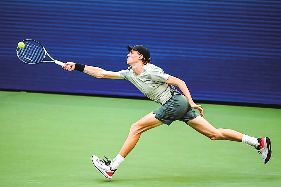 9月8日,辛纳在比赛中回球。新华社记者李睿摄