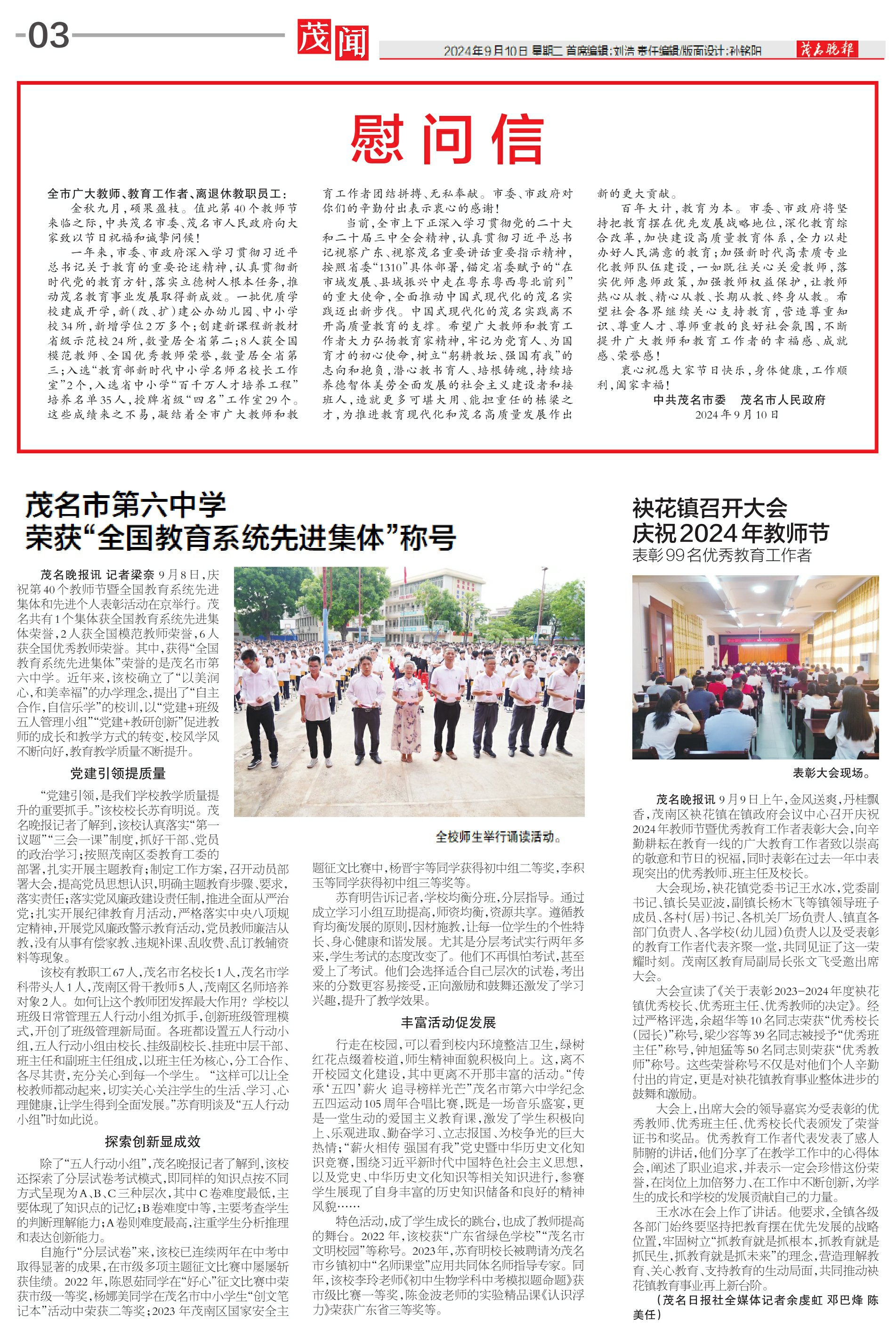 袂花镇召开大会庆祝2024年教师节