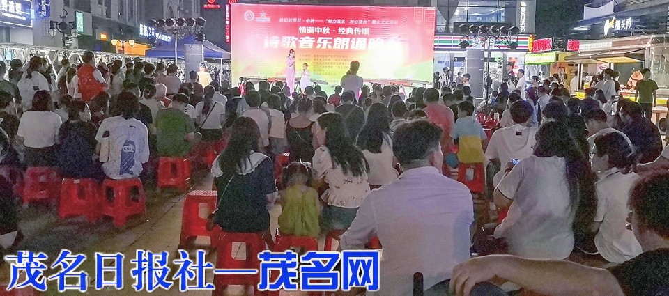 茂名晚报讯 记者 冯小飞 通讯员 苏柯子 15日晚上,由茂名市文化馆、茂名市体育彩票管理中心、茂名市演讲学会、广东省文化和旅游志愿者总队茂名分队共同承办的“魅力茂名·好心戏台”群众文化活动——“情满中秋·经典传颂”诗歌音乐朗诵晚会,在1959南越文创街举行。活动“以诗为友、以乐为韵”,为市民游客奉上一场以“朗诵+古筝+轻唱”的表演形式,让市民朋友们沉浸式感受诗词的艺术魅力。