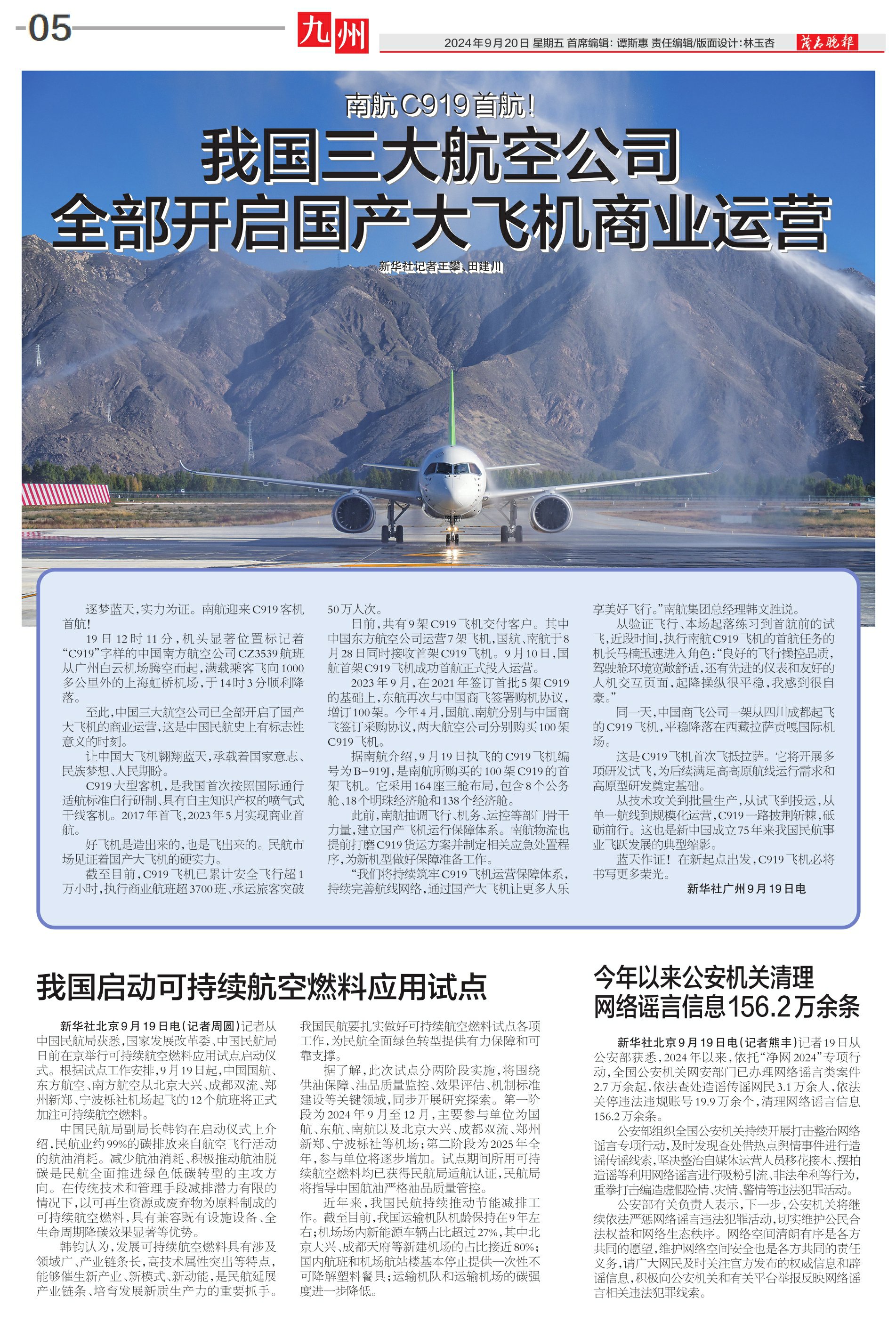 我国三大航空公司全部开启国产大飞机商业运营