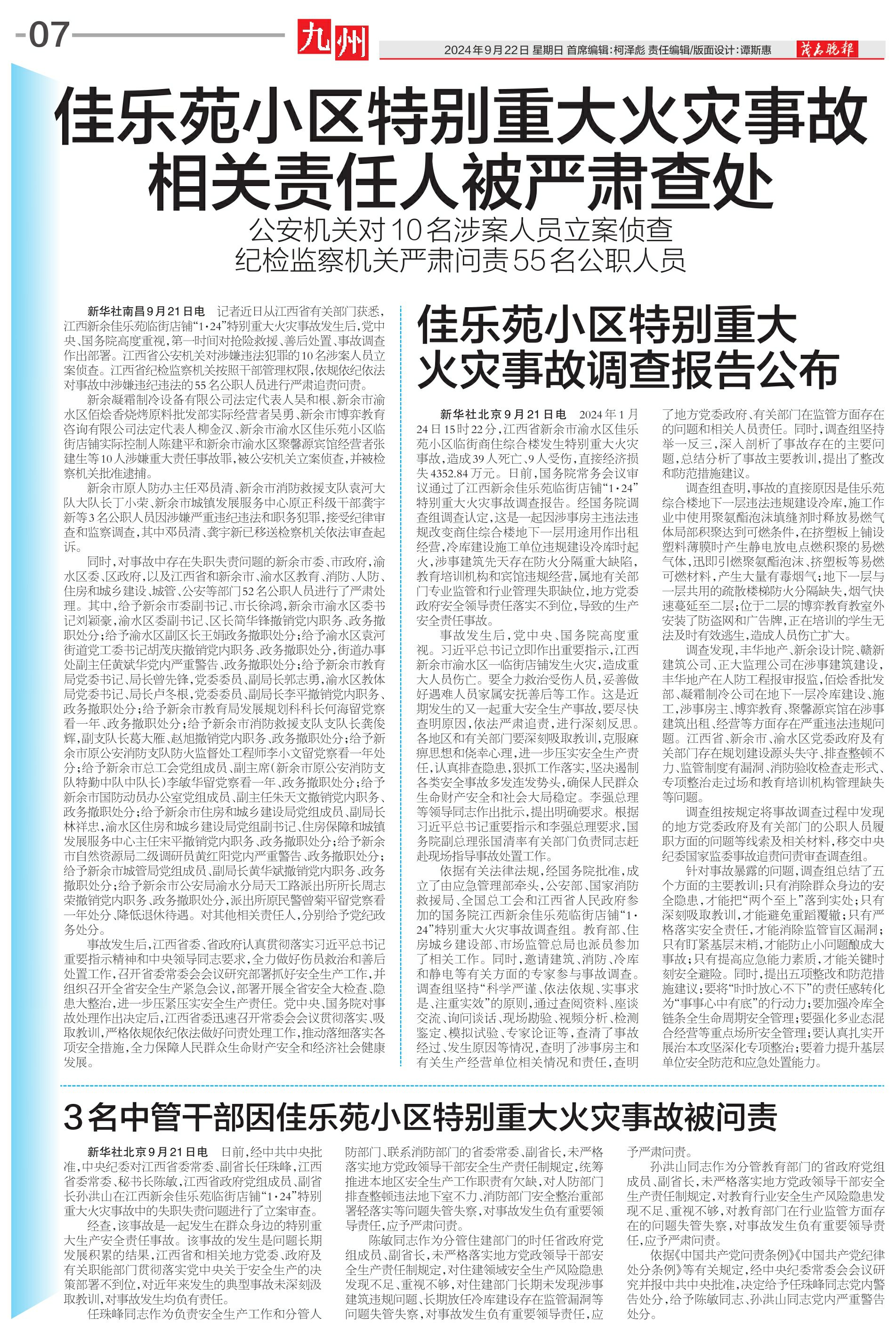3名中管干部因佳乐苑小区特别重大火灾事故被问责