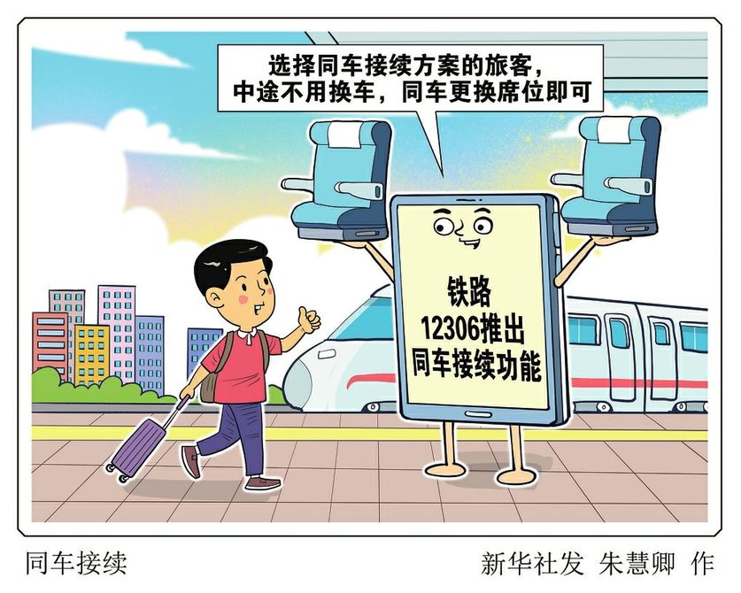 新华社北京9月24日电(记者樊曦)记者24日从中国国家铁路集团有限公司了解到,为了给旅客出行提供更多选择,铁路12306手机App和网站推出同车接续功能。