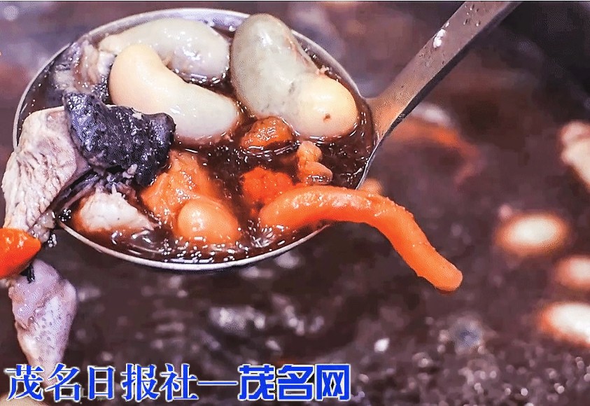 “其实在我们荔乡,早已一种秘制猪郎汤,我们是在挖掘民间传统饮食精髓的基础上,加入多种食材加以创新。”据公司总经理苏柏成介绍,此汤对食材、配料、熬制温度、时间等都有严格的标准执行,与普通煲汤有很大不同,是选用米糠养足250天的原种乌鸡煮20分钟后,加入花胶、鸡子和秘制汤料煮开,然后把一只原种乌鸡蛋打入碗中再盛上热汤搞均匀,一碗营养价值极高的“猪郎汤”便大功告成。此汤香气扑鼻、清爽鲜美,喝上一口感觉整个人都被滋润了。