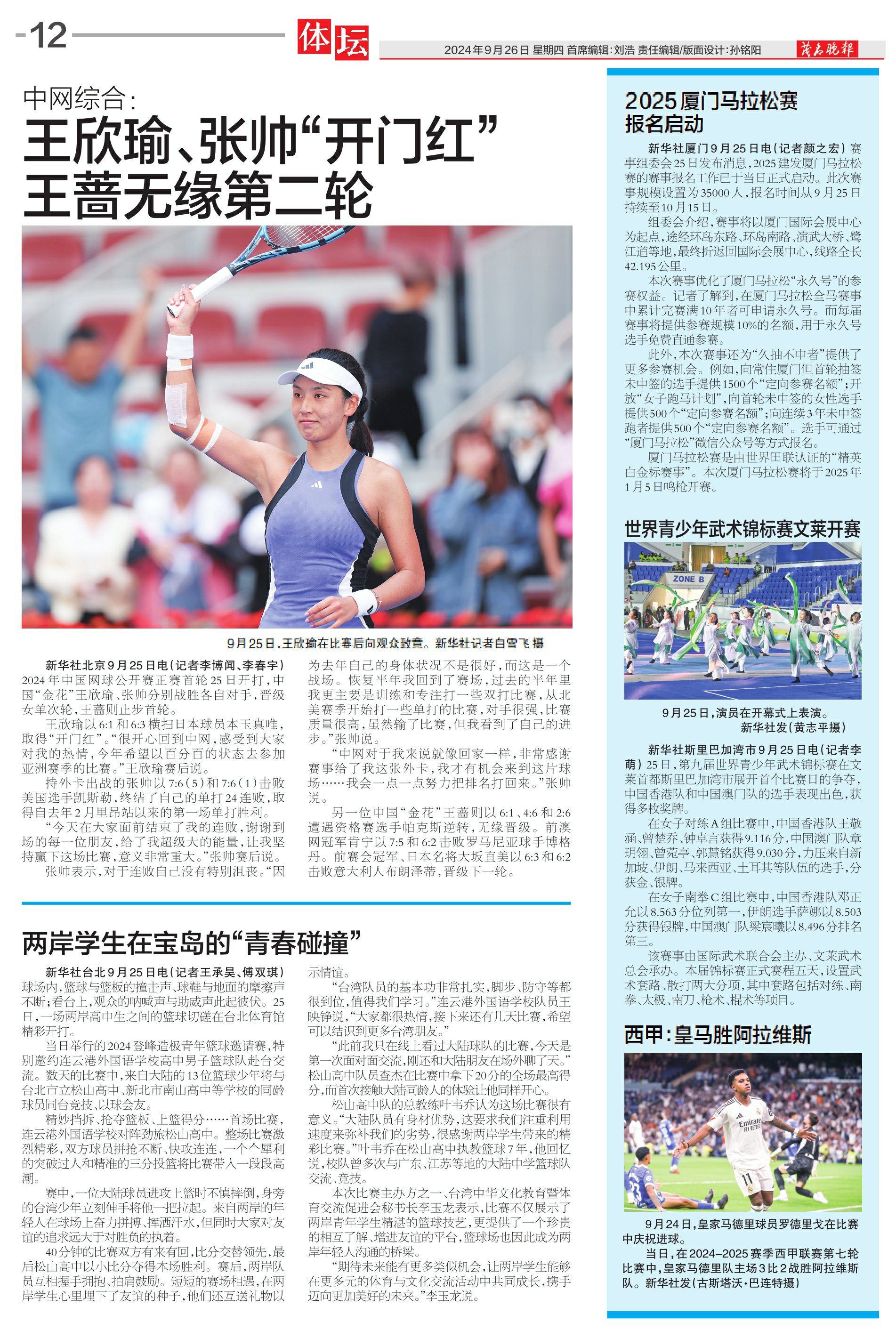 王欣瑜、张帅“开门红”王蔷无缘第二轮