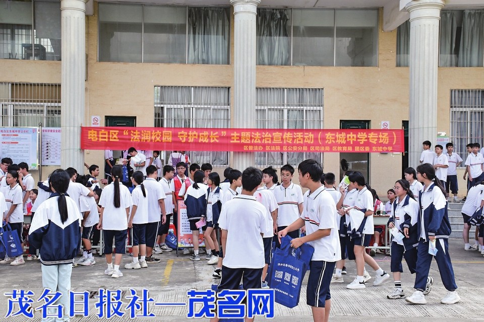 茂名晚报讯 记者 刘浩 通讯员 黄心泳 为全面加强未成年人的法治意识和自我防范能力,帮助他们树立知法、懂法、守法的法治观念,推进平安校园、和谐校园、法治校园建设,9月27日,团电白区委联合区普法办、区司法局、区教育局、区法院、区公安分局在电白区东城中学开展“法润校园守护成长”普法宣传活动。