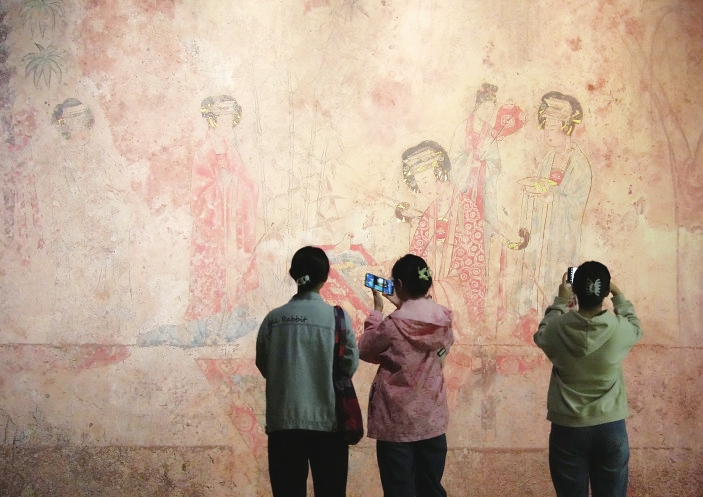 10月1日,游客在辽宁省博物馆观看展览。新华社记者李钢摄