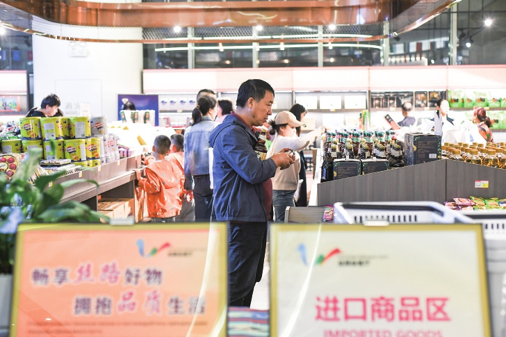 10月1日,西安中亚公园游人如织,市民游客到此参观展览、选购商品。 新华社记者张博文摄