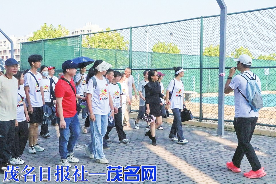 50名视障人士走进广东石油化工学院西城校区感受校园生活。茂名日报社全媒体记者 岑稳 通讯员 杨水正 摄