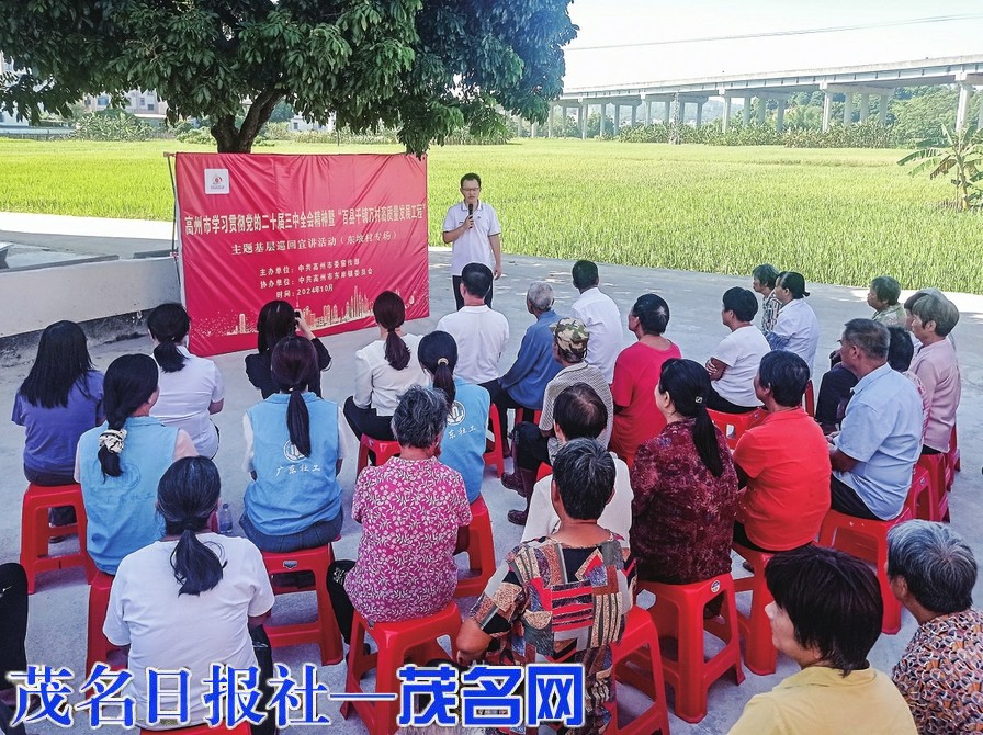 茂名晚报讯 记者 黄楚凡 通讯员 曾霞 为深入学习宣传贯彻党的二十届三中全会精神,推动全会精神在基层落地生根,10月14日,由高州市委宣传部主办、高州市东岸镇党委协办的“学习贯彻党的二十届三中全会精神暨‘百县千镇万村高质量发展工程’主题基层巡回宣讲活动”,在东岸镇东坡村举行。