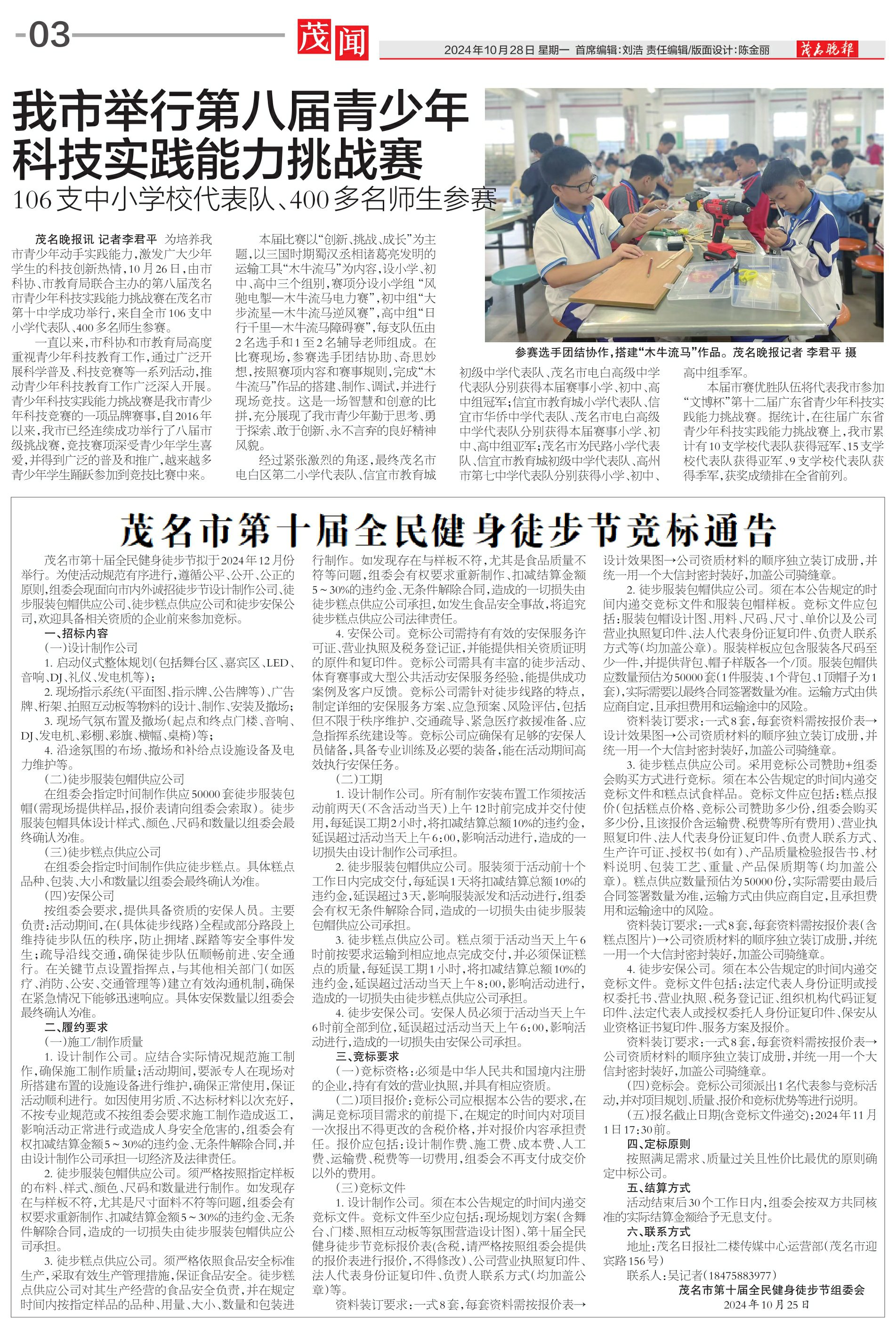 茂名市第十届全民健身徒步节竞标通告
