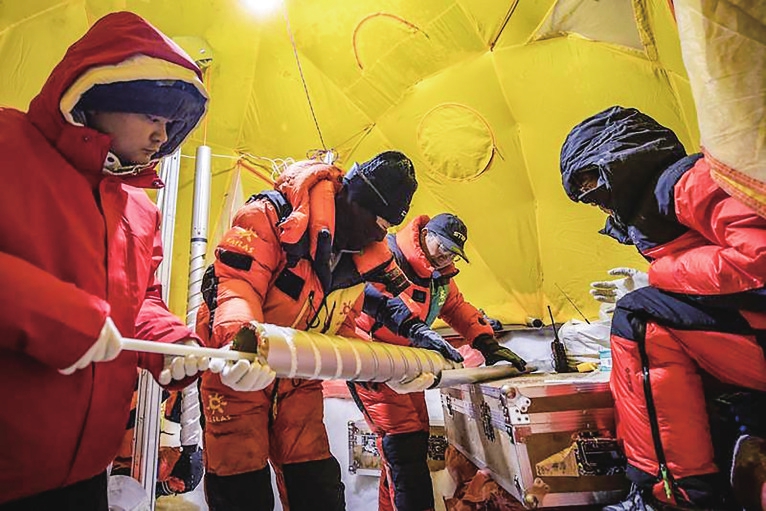 科学家介绍,冰川一旦融化,其封存的地球历史记录也将消失,因此钻取、保存冰芯尤为重要。