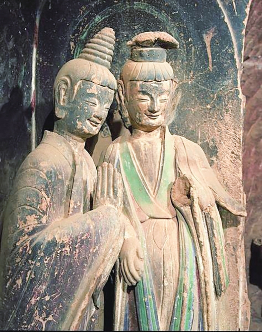 麦积山石窟保存的造像以彩塑为主,全面展示了我国古代彩塑发展演变过程。因有许多灵动多姿、各有特点的微笑塑像,也被叫作“微笑佛国”。