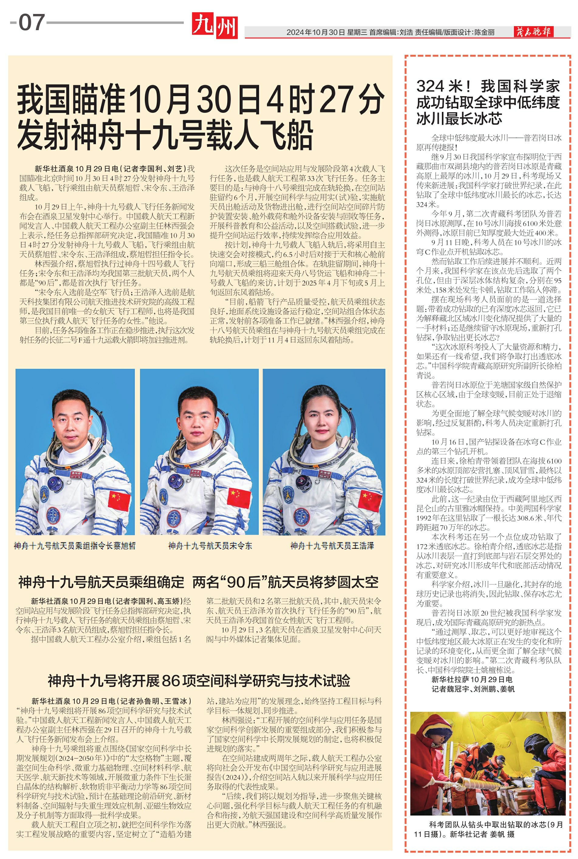 神舟十九号航天员乘组确定 两名“90后”航天员将梦圆太空