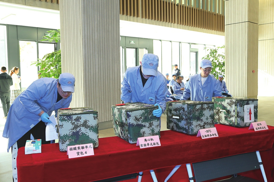 11月4日,在位于北京的中国科学院空间应用工程与技术中心,工作人员检查返回实验样品转运包状态。新华社发(中国科学院空间应用工程与技术中心供图)