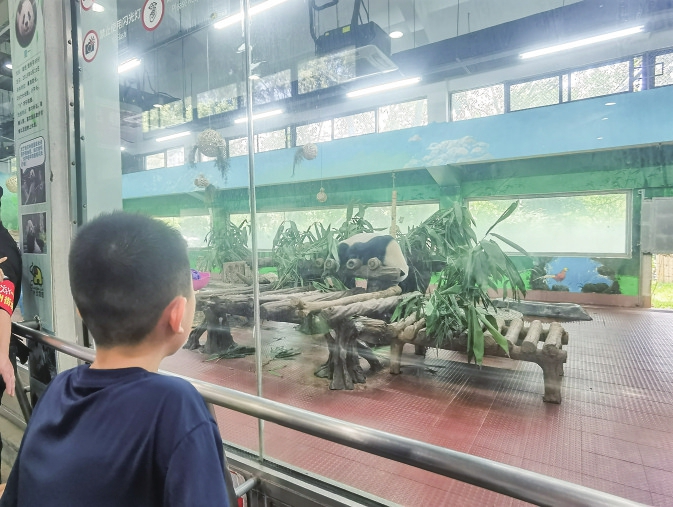 接着,我们去给大熊猫“祝寿”。虽然排了半个多小时队才见到它,不过很值得。试问全国还有哪个动物园或基地只需要花“很亲民”的门票并且在排队1小时内能一睹大熊猫真容的?没有吧,所以广州动物园性价比很高。而且这里的大熊猫一点都不胖,仿佛它穿的那身经典的黑白条纹衫不是睡衣,而是健身衣吧!