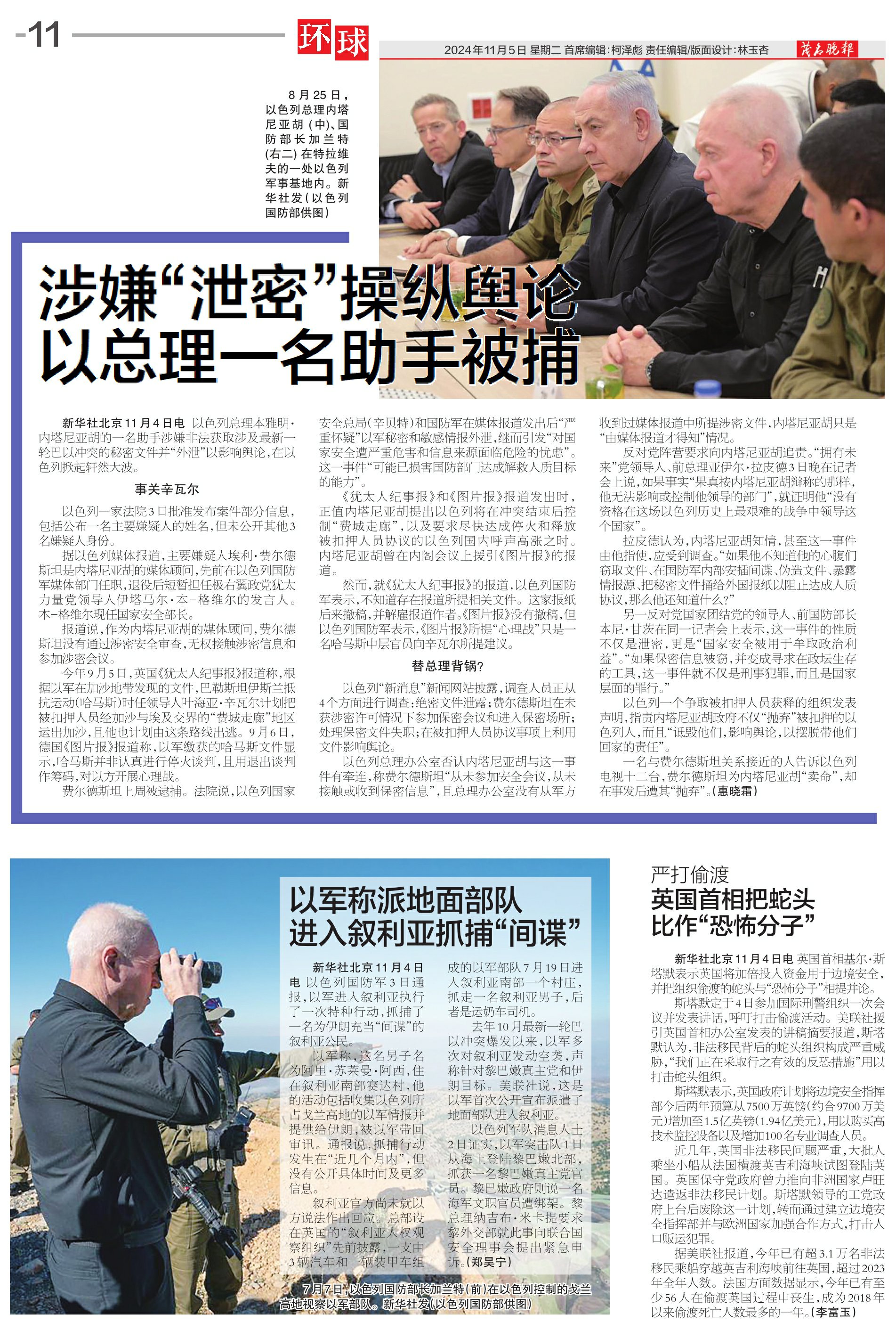 涉嫌“泄密”操纵舆论 以总理一名助手被捕
