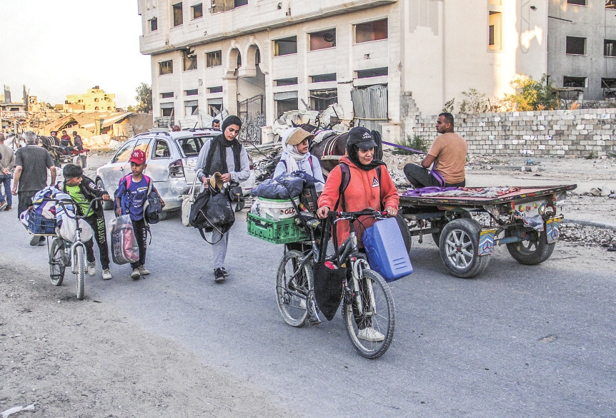 这是10月19日在加沙地带拍摄的逃离加沙地带北部杰巴利耶难民营的民众。新华社发(马哈茂德·扎基摄)