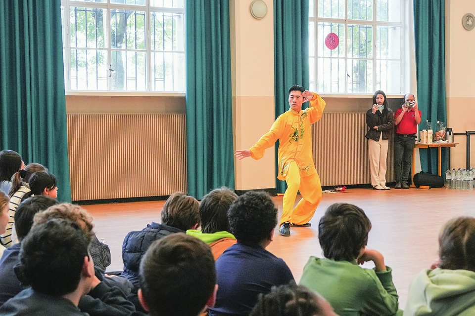 据张玉萍介绍,除了当天走进法国校园的活动,这支队伍前几日还在巴黎与法国国家武术队合作举办了一场武术表演,并在巴黎中国文化中心进行了一场关于武术文化的讲座,还在埃菲尔铁塔下带来了一场武术“快闪”活动。