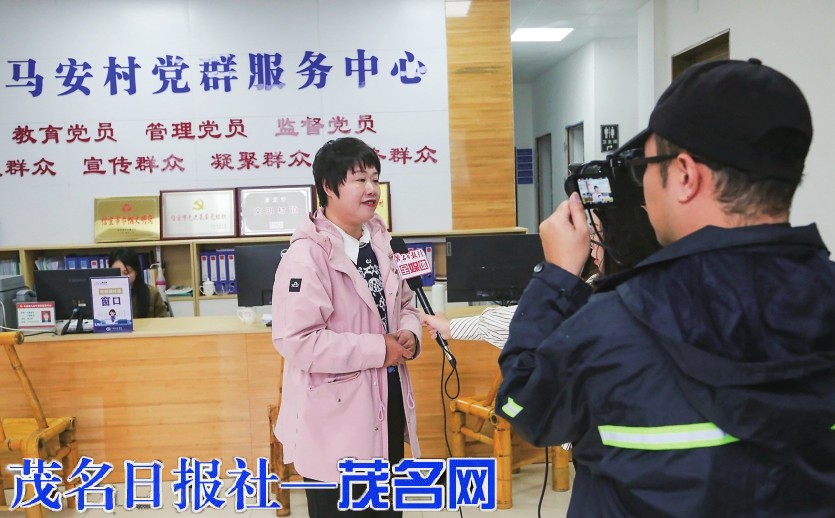 马安村干部接受记者采访。茂名日报社全媒体记者 李颜东 摄