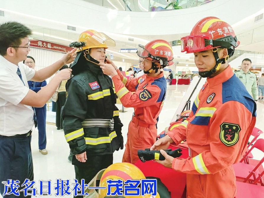 茂湛高速一线员工代表体验消防服装备穿戴。
