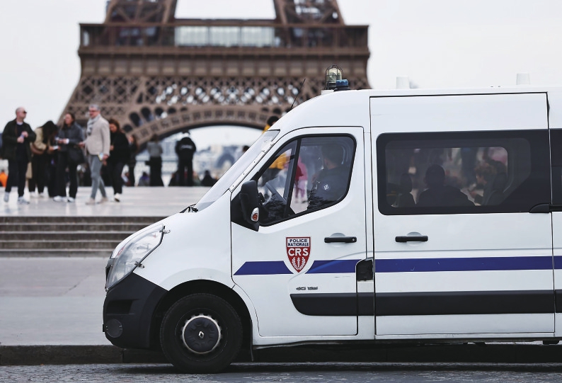 3月25日,法国警察在巴黎特罗卡德罗广场巡逻警戒。 新华社记者高静摄