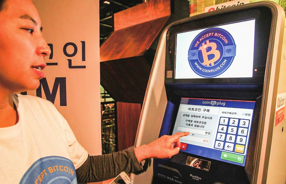 2014年3月8日,在韩国首尔,一名工作人员展示如何使用比特币自动取款机。 新华社记者 姚琪琳 摄