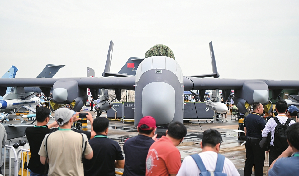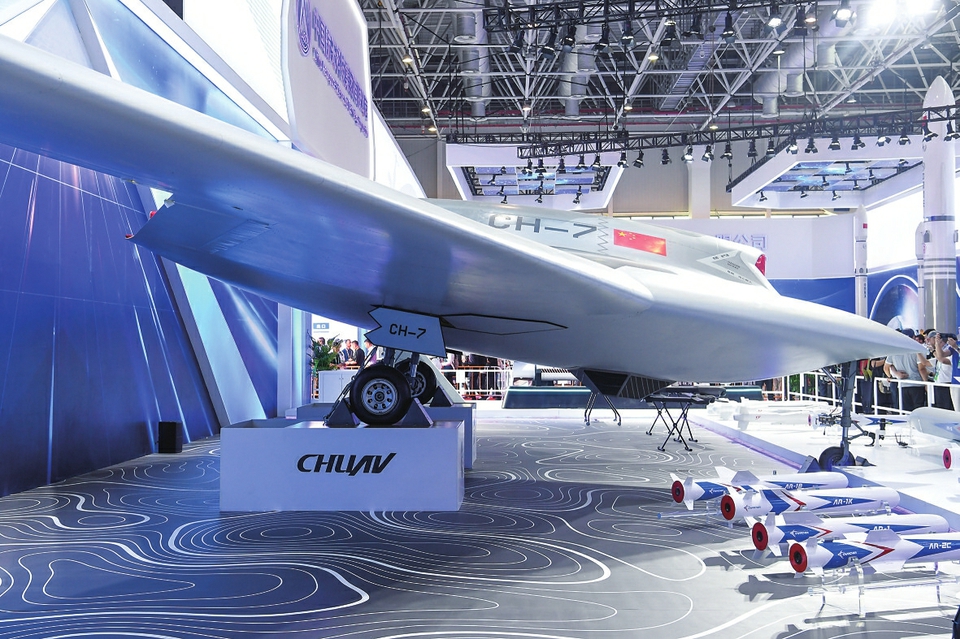 彩虹-7无人机首次亮相中国航展,受到广泛关注(11月13日摄)。 新华社记者 梁旭 摄