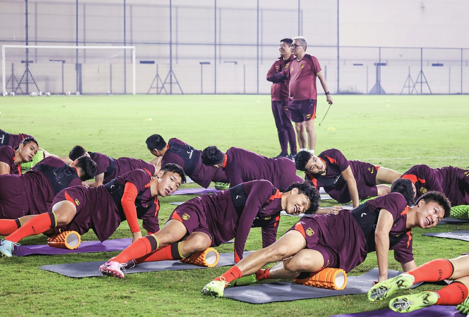 11 月 12日,中国国家男子足球队成员在巴林进行赛前训练。新华社记者 王海洲 摄