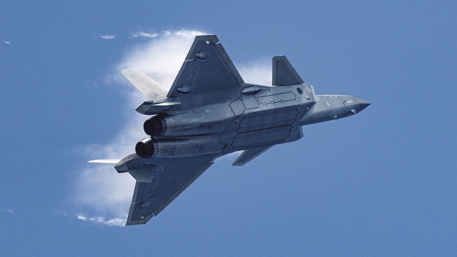 11月12日,中国空军歼-20战机在珠海航展上进行飞行表演。 新华社发(徐阳 摄)