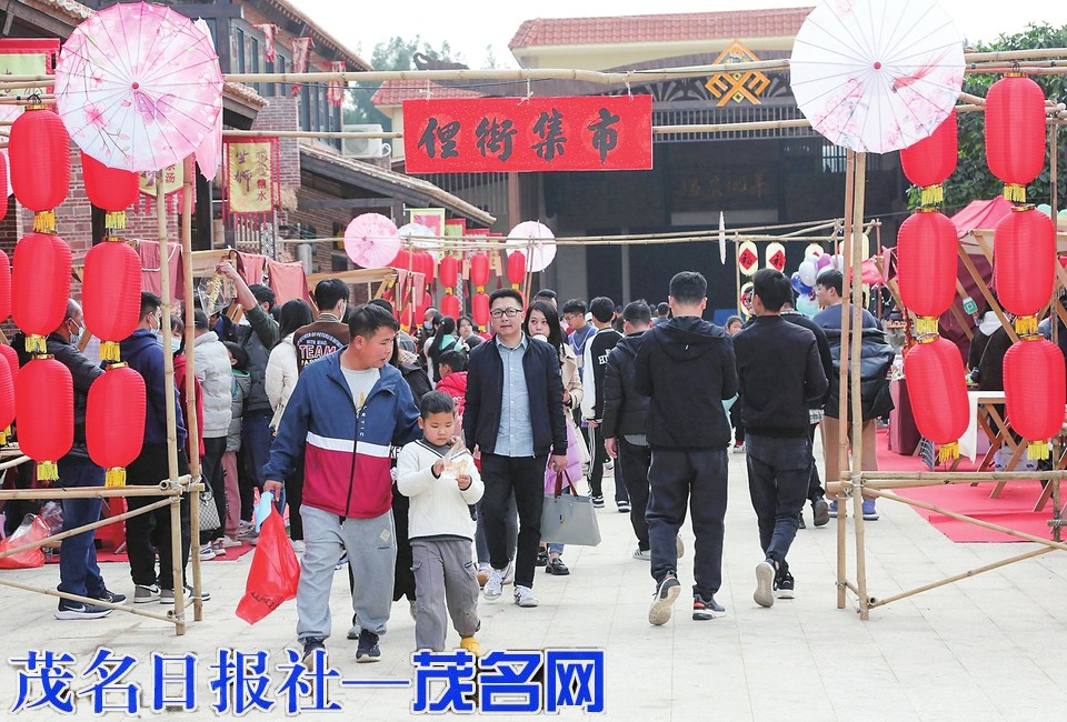 游客开心逛俚街集市。茂名日报社全媒体记者 李颜东 摄