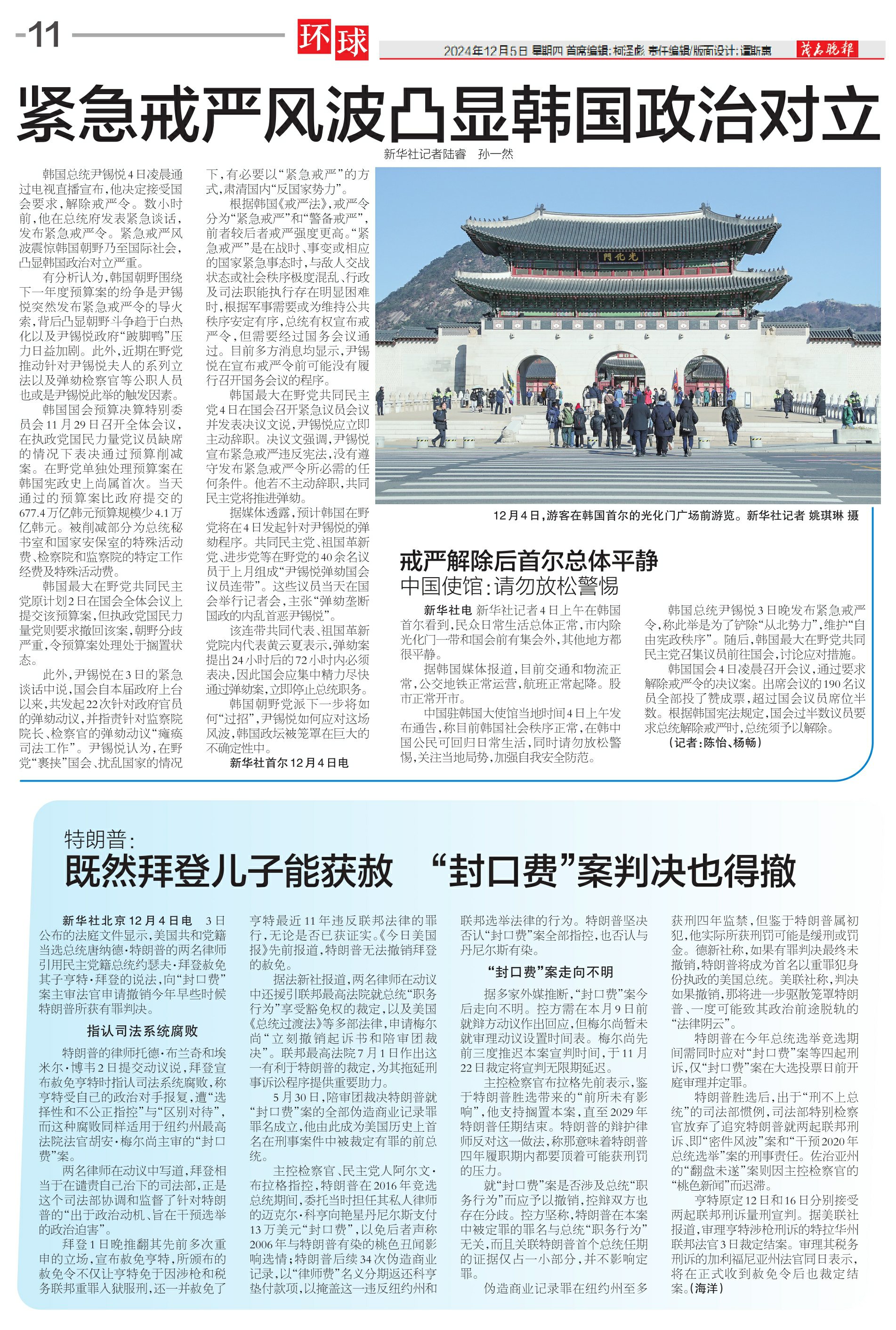 戒严解除后首尔总体平静